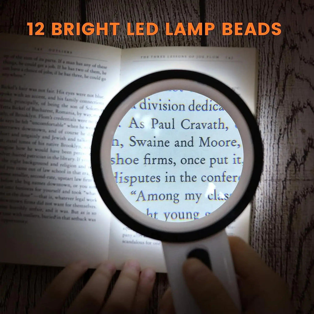 See details clearly with this 30X Handheld Magnifying Glass featuring a double real glass lens for crisp, distortion-free viewing. Equipped with 12 bright LED lights, it provides extra illumination to reduce eye strain, making reading and inspection easier for seniors or anyone with low vision. The magnifier arrives fully assembled and only requires two AA batteries to operate, offering simple, intuitive use for everyday tasks. Perfect for reading, examining coins or jewelry, or viewing fine print, this durable, easy-to-hold magnifier delivers powerful clarity and comfort in one reliable tool.